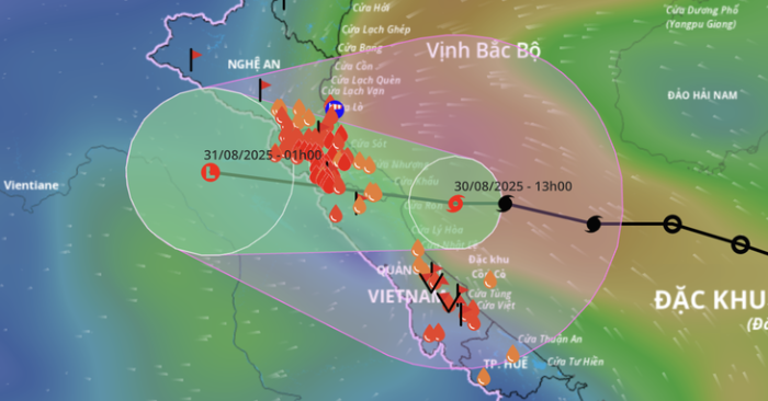 Từ Nghệ An đến Đà Nẵng đã xuất hiện mưa to, có nơi lượng mưa trên 300mm. Dự báo từ tối 30/8 đến hết ngày 31/8, khu vực Thanh Hóa – Hà Tĩnh có mưa rất to (100-180mm, có nơi trên 300mm). Đồng bằng và trung du Bắc Bộ, cùng Quảng Trị, mưa phổ biến 40-100mm, có nơi vượt 200mm.
