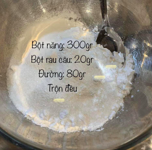 Trộn đều 300gr bột năng, 20gr bột rau câu jerry, 80gr đường vào một âu.