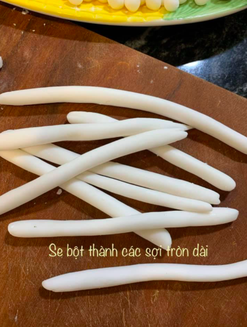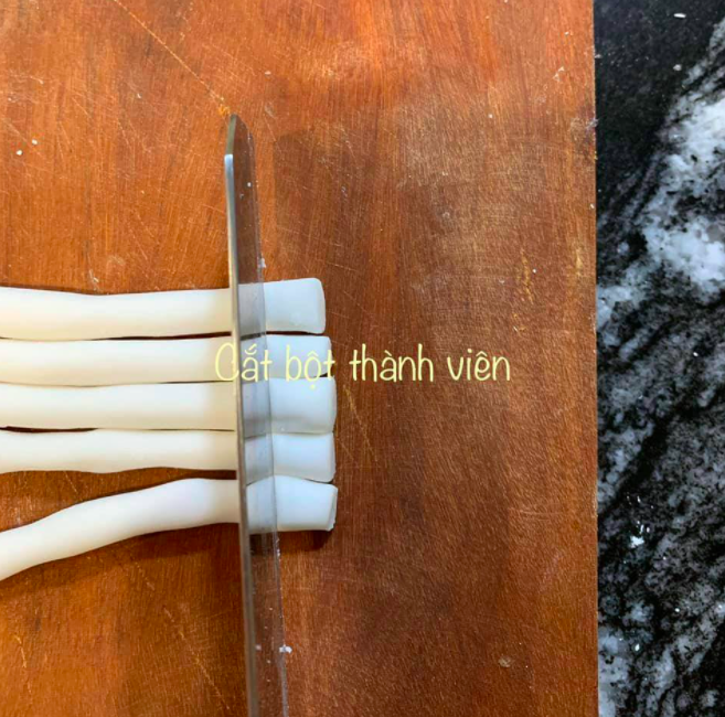 Nhào cán bột se thành sợi dài đều nhau rồi lấy dao cắt đoạn ngắn, để khi viên vừa nhanh mà vừa tròn đều.