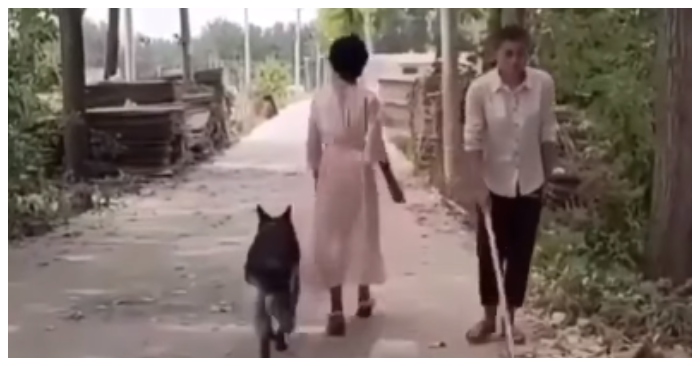Thấy một người đi ngược chiều bị mù, chú chó hiểu chuyện quay trở lại mang cành cây chắn ngang đường ra chỗ khác, để người đó không bị vấp ngã.