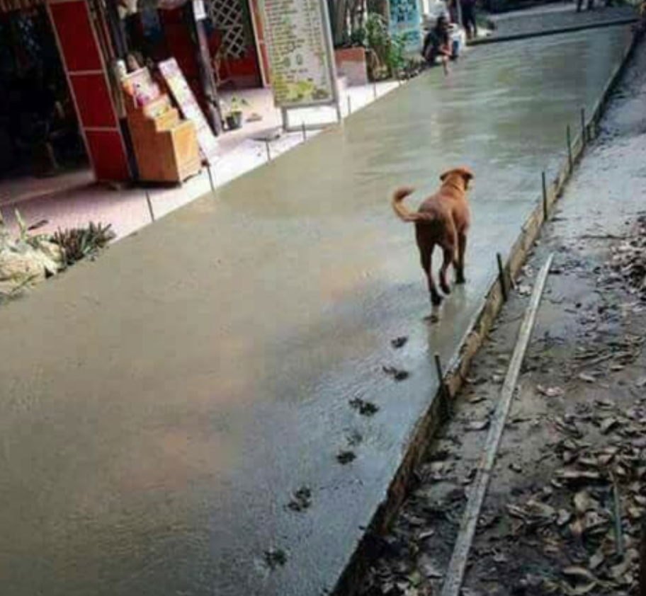 Trước đó, trên trang Doanhnghiepvn, cũng đăng tải nhiều trường hợp dở khóc, dở cười khi những đoạn đường mới làm xong chưa kịp khô mà bị những vị khách không mời mà đến phá hỏng.