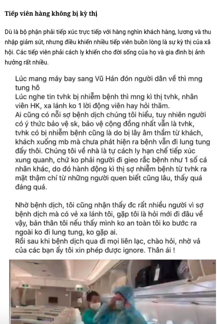 Bên cạnh đó, báoThanh Niên có đăng tải chia sẻ của một tiếp viên trên mạng xã hội vì bị kỳ thị do lo ngại nhiễm Covid-19.