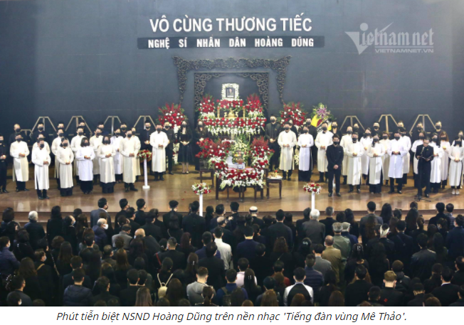 NSND Hoàng Dũng qua đời vào chiều mùng 3 Tết (ngày 14/2) sau thời gian chiến đấu với bệnh ung thư tuỵ. Hôm nay, ngày 20/2, lễ viếng và an táng cố nghệ sĩ đã diễn ra tại nhà tang lễ Quốc gia, số 5 Trần Thánh Tông, Hà Nội.