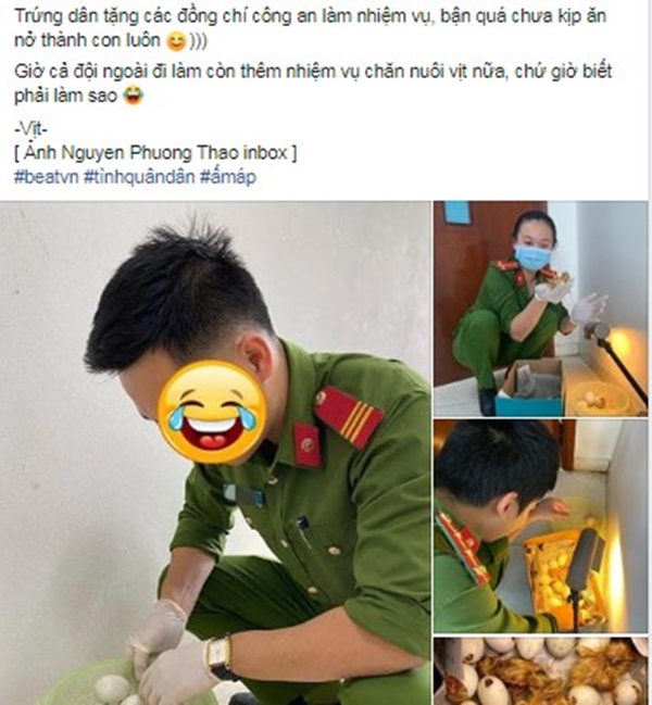 Trứng dân tặng các “chiến sĩ” chống dịch bận quá chưa kịp ăn đã nở thành con. Giờ cả đội ngoài đi làm còn thêm nhiệm vụ chăn nuôi vịt nữa, chứ giờ biết phải làm sao.
