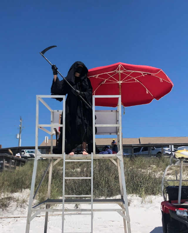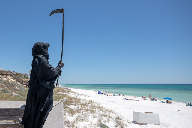 Một luật sư ở Florida (Mỹ), tên là Daniel Uhlfelder, mới đây đã đi đến các bãi biển trong trang phục “thần chết” để kêu gọi mọi người ở nhà trong tình trạng lệnh cách ly được nới lỏng.