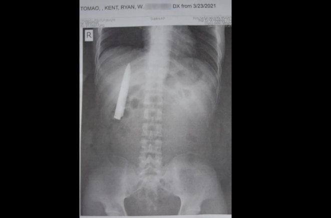 Tờ ABS-CBN ngày 24/3 đưa tin người đàn ông có tên Kent Ryan Tomao, 25 tuổi, phát hiện ra lưỡi dao 10cm găm trong cơ thể khi đi khám sức khoẻ để xin việc vào một công ty khai thác mỏ.