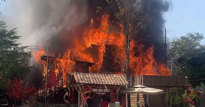 Ngọn lửa bùng phát từ khu pha chế lan rộng ra các khu nhà hai tầng