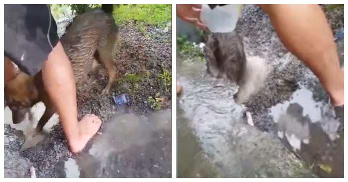 Đoạn video cho thấy, khi phát hiện hang mà con mình nằm bị mưa to làm ngập nước; chó mẹ bất chấp nguy hiểm chui vào để lôi con ra ngoài.